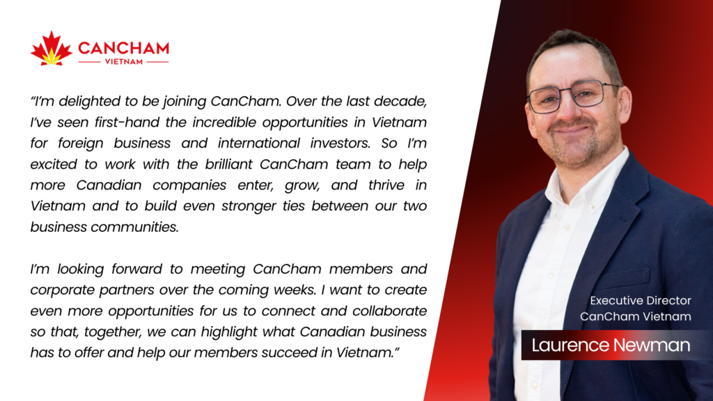 The Canadian Chamber of Commerce in Vietnam (CanCham) is pleased to announce the appointment of Laurence Newman as its new Executive Director.